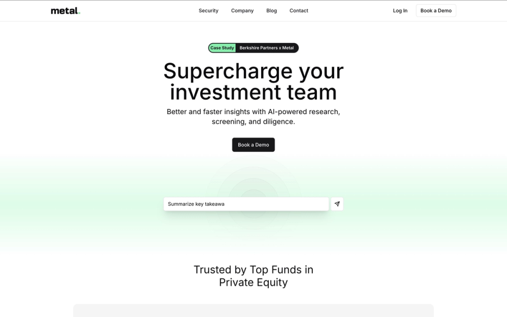 Metal is an AI-powered platform designed to supercharge investment teams. It unifies internal and external data to uncover insights and accelerate diligence processes within a secure environment.